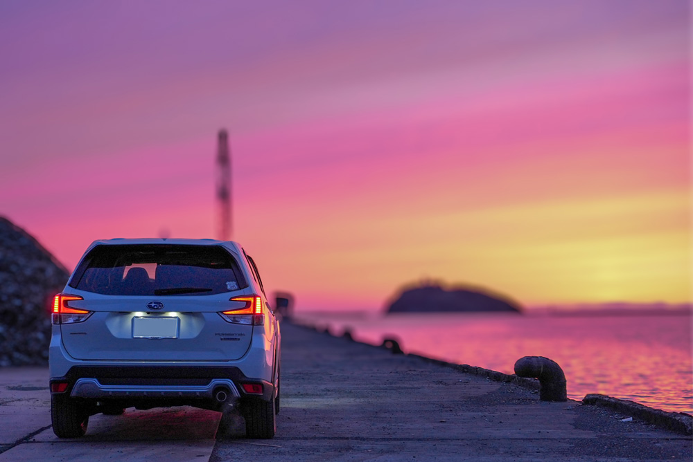大切な愛車でしたが、鹿とぶつかってしまい、保険が効かず約50万出して修理し、綺麗になって戻ってきたフォレスターと一緒に撮りに行きました。買い替えも考えましたが、内装も好きで思い出が詰まった車なので、もう少しこのフォレスターに頑張ってもらいます。